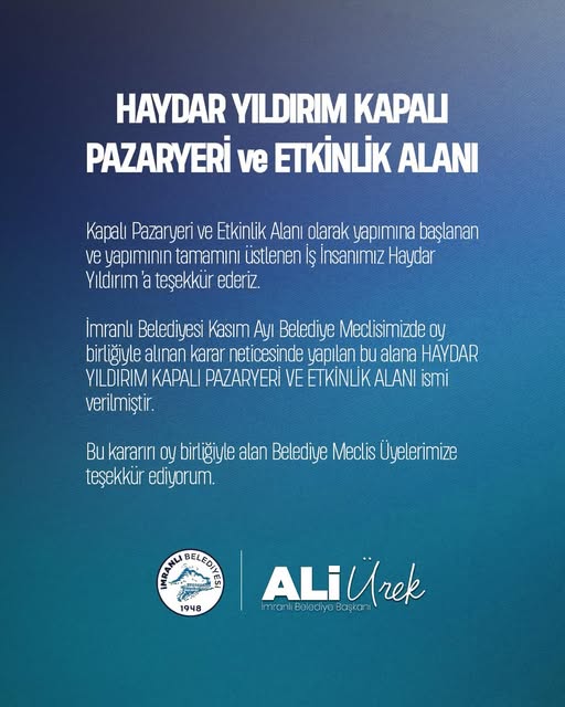 Haydar Yıldırım Kapalı Pazaryeri ve Etkinlik Alanı hayırlı olsun.