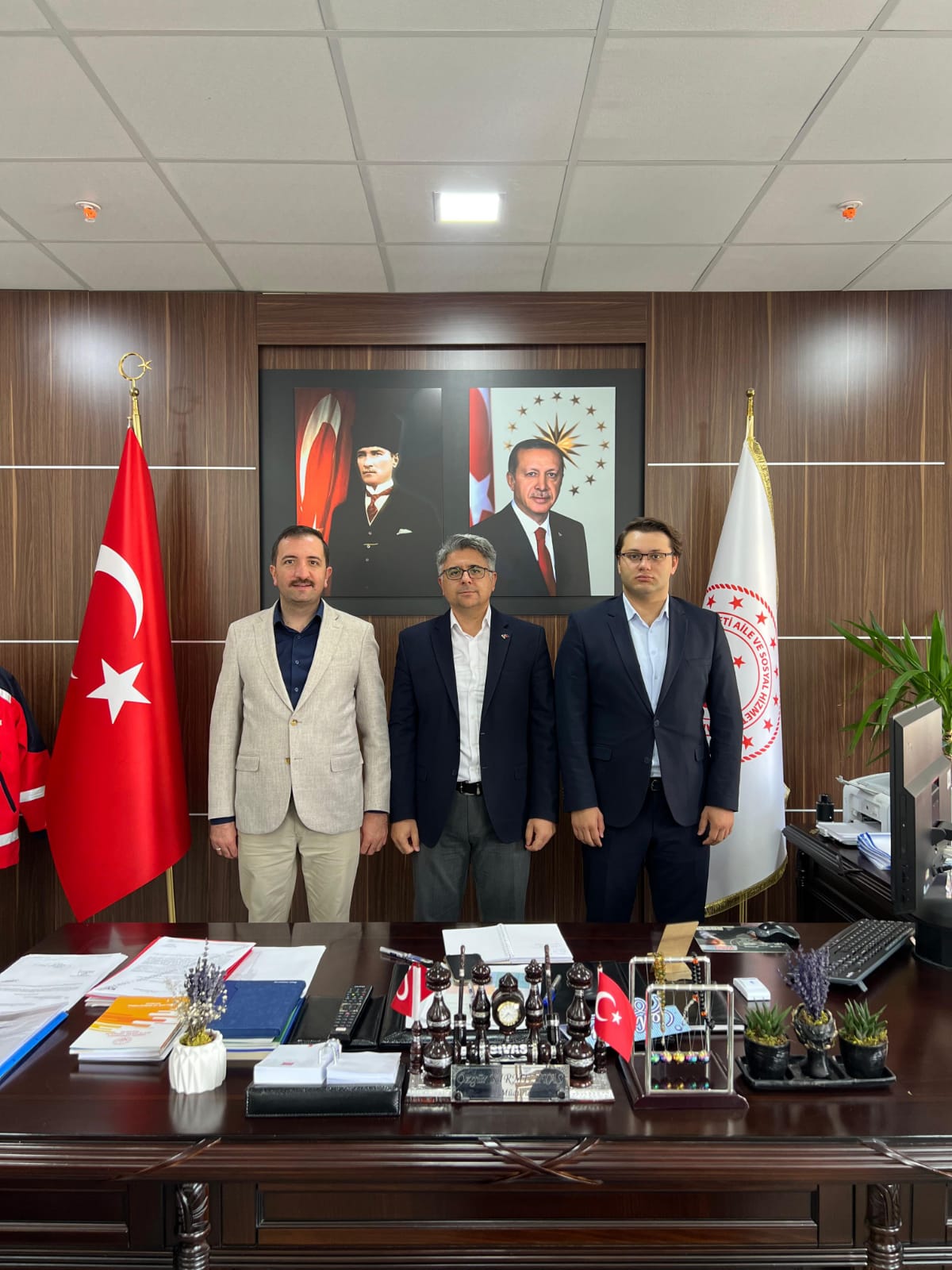 Belediye Başkanımız Ali Ürek, Sayın Kaymakamımız Yusuf Kaan Kırık ile birlikte Aile ve Sosyal Hizmetler İl Müdürü Özgür Kırmızıtaş'ı makamında ziyaret etti.