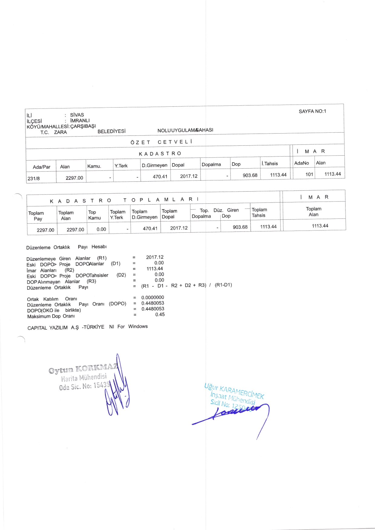 ÇARŞIBAŞI MAHALLESI 231 ADA 8 PARSEL 18. MADDE İMAR UYGULAMASI