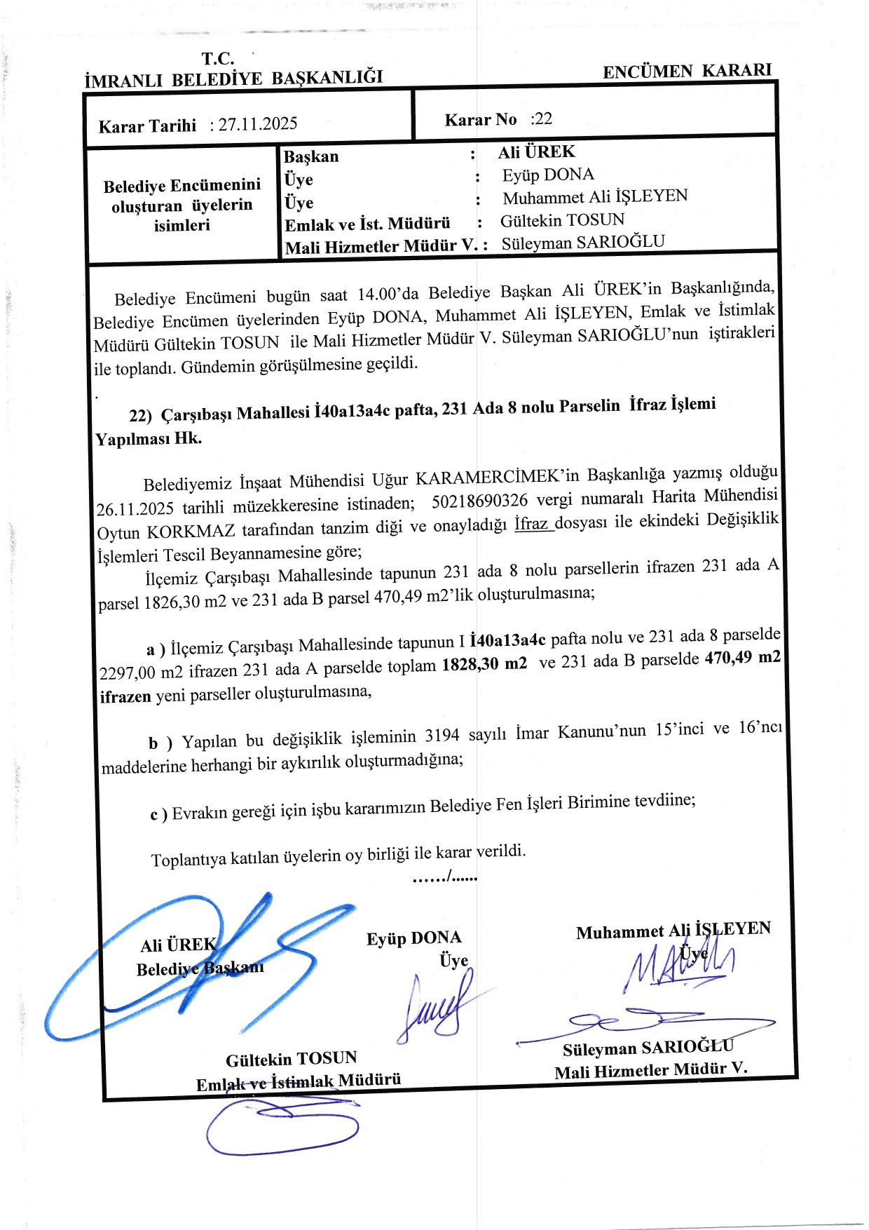 / ÇARŞIBAŞI MAHALLESI 231 ADA 8 PARSEL 18. MADDE İMAR UYGULAMASI